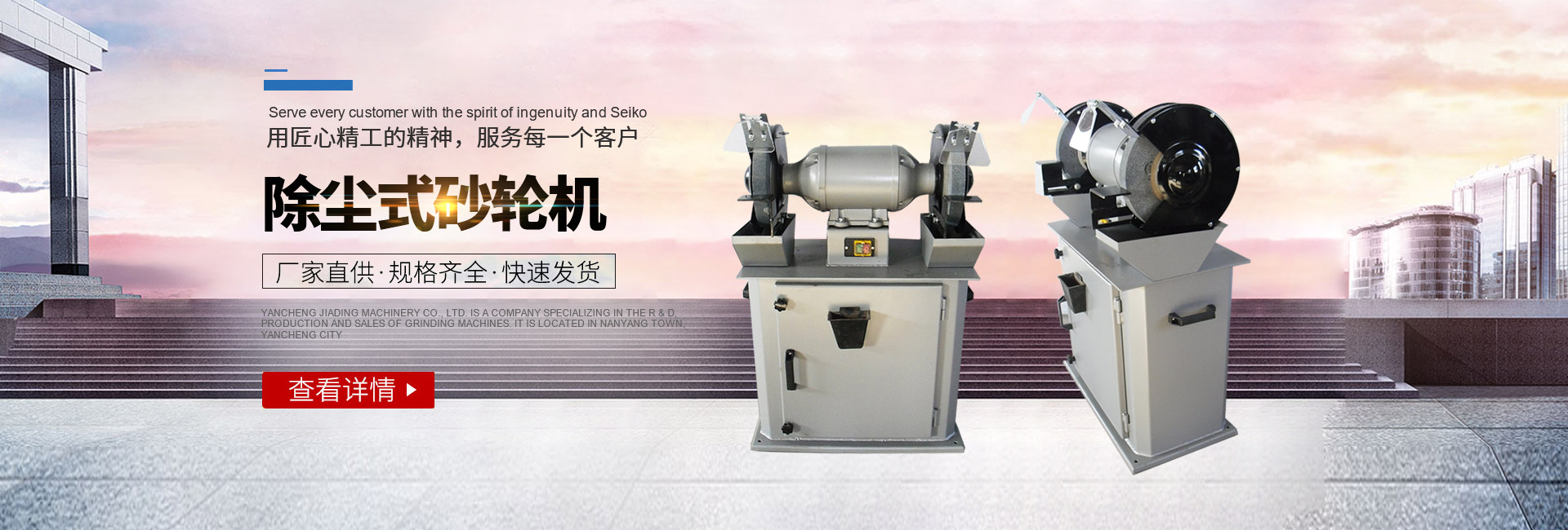 鹽城嘉鼎機(jī)械有限公司是一家專業(yè)從事砂輪機(jī)研發(fā)、生產(chǎn)、銷售為一體的公司,坐落在鹽城市南洋鎮(zhèn)。主要產(chǎn)品有:砂輪機(jī)、砂帶機(jī)等系列。其中砂輪機(jī)有:臺式、立式、懸掛式、除塵式、它驅(qū)式、防爆式等三十多個(gè)規(guī)格品種,也可定制特殊行業(yè)所需的異型砂輪機(jī)。